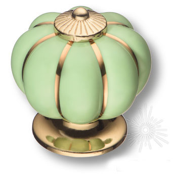 Ручка кнопка S-101 GOLD GREEN, материал Замак Керамика, цвет Зелёный, отделка Золото Керамика, 40*d=40/28 мм