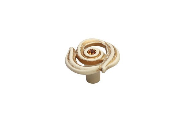 Ручка кнопка WPO.724Y.035.MTZT5, материал Замак, отделка Золотая патина Золото Слоновая кость Хрусталь, 22*d=32 мм